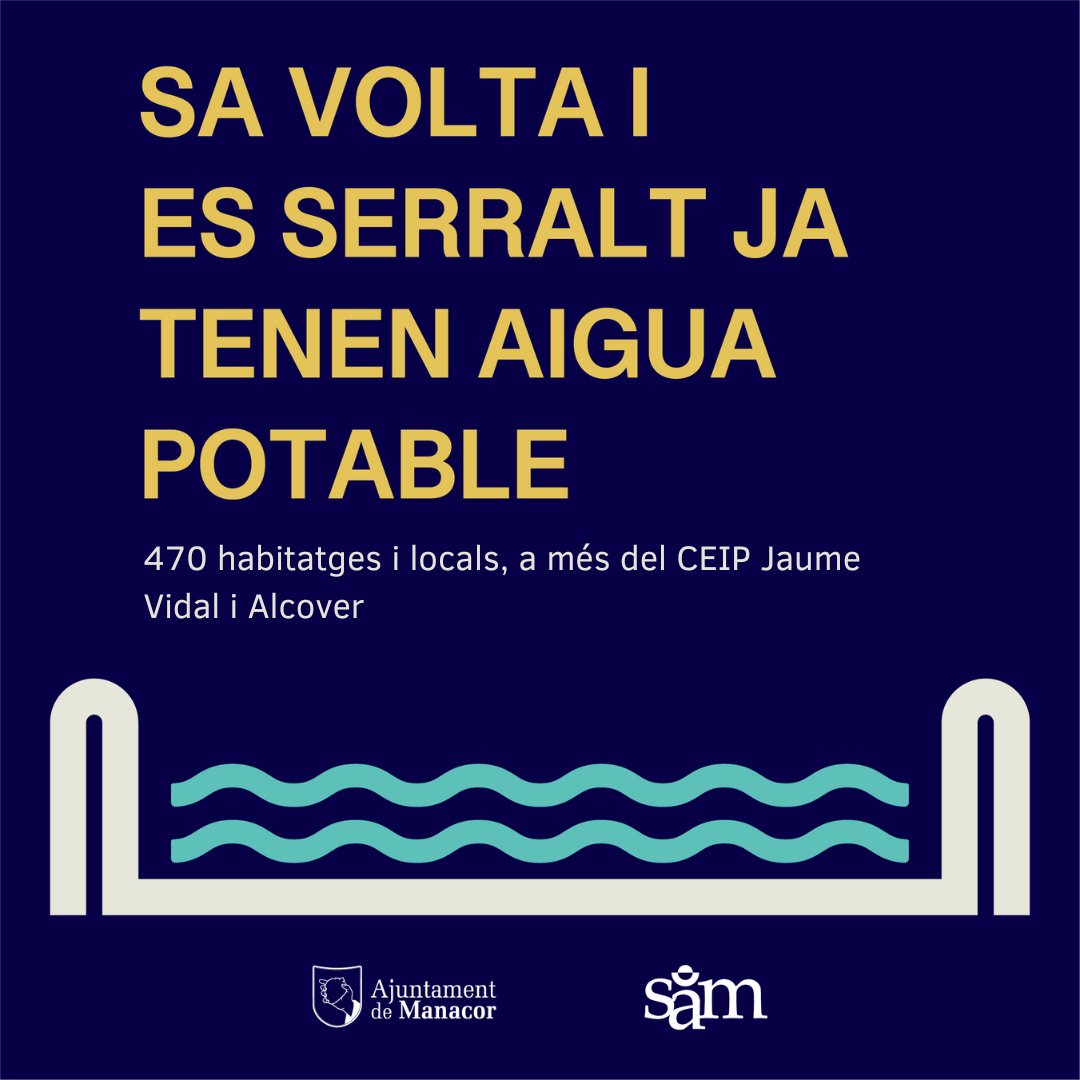 Des d'aquest mes de gener, els veïnats que viuen o tenen un negoci als sectors 24 i 25, corresponents a la zona de sa Volta i es Serralt, ja disposen de l'aigua potable que distribueix la planta potabilitzadora pilot de l'Ajuntament de Manacor. Un total de 470 habitatges i locals de Manacor, a més de l'escola d'infantil i primària Jaume Vidal i Alcover, ja poden fer servir l'aigua de l'aixeta per beure i per cuinar.