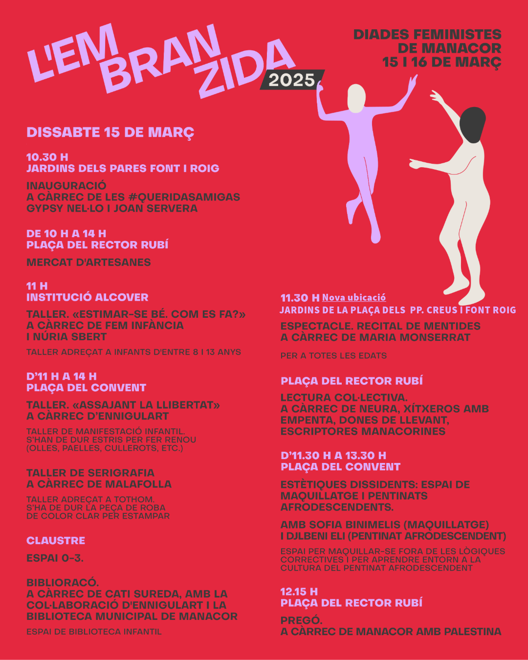 L'Embranzida 2025 són les Diades Feministes que ompliran Manacor de força i de propostes el cap de setmana del 15 i 16 de març.
