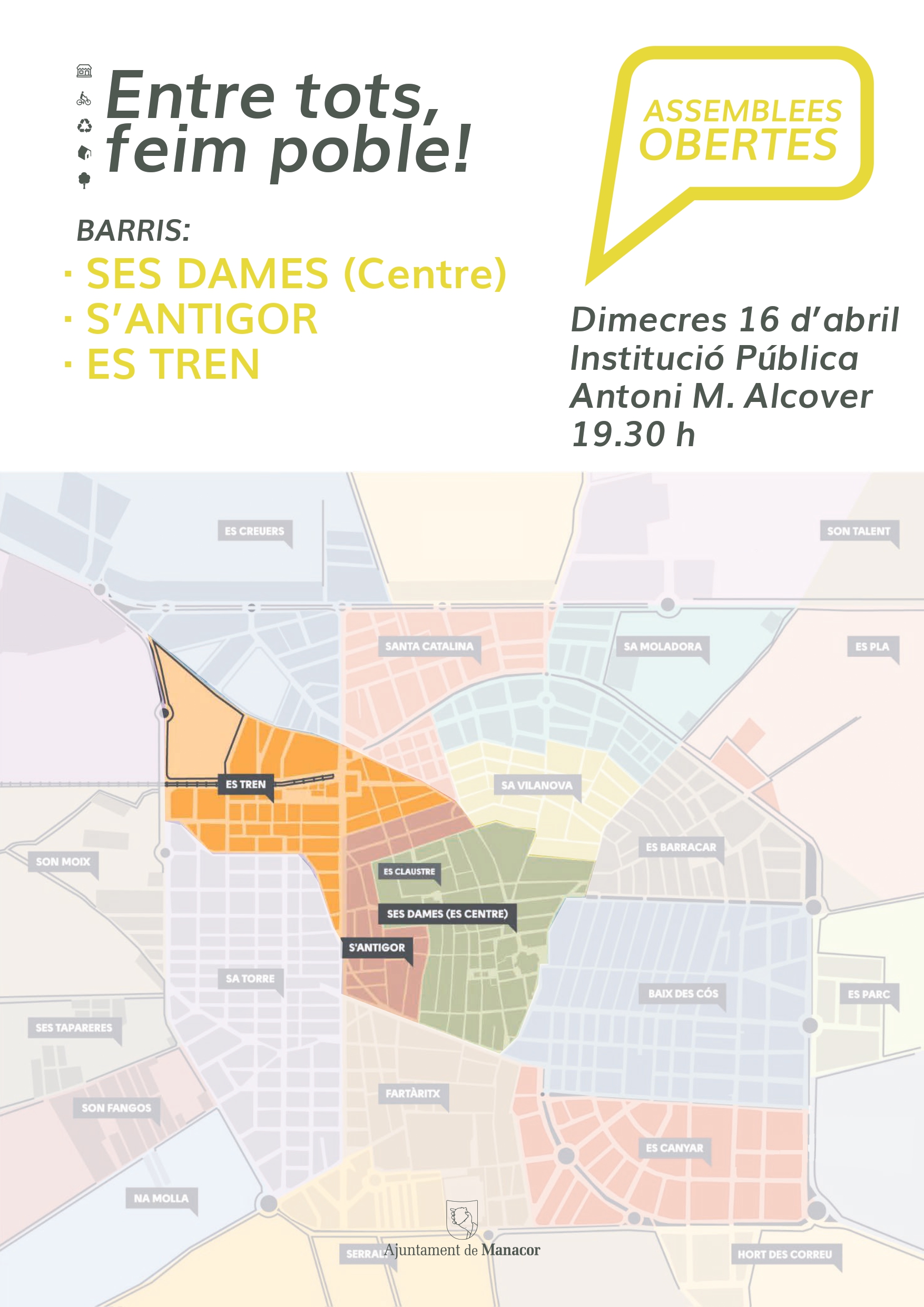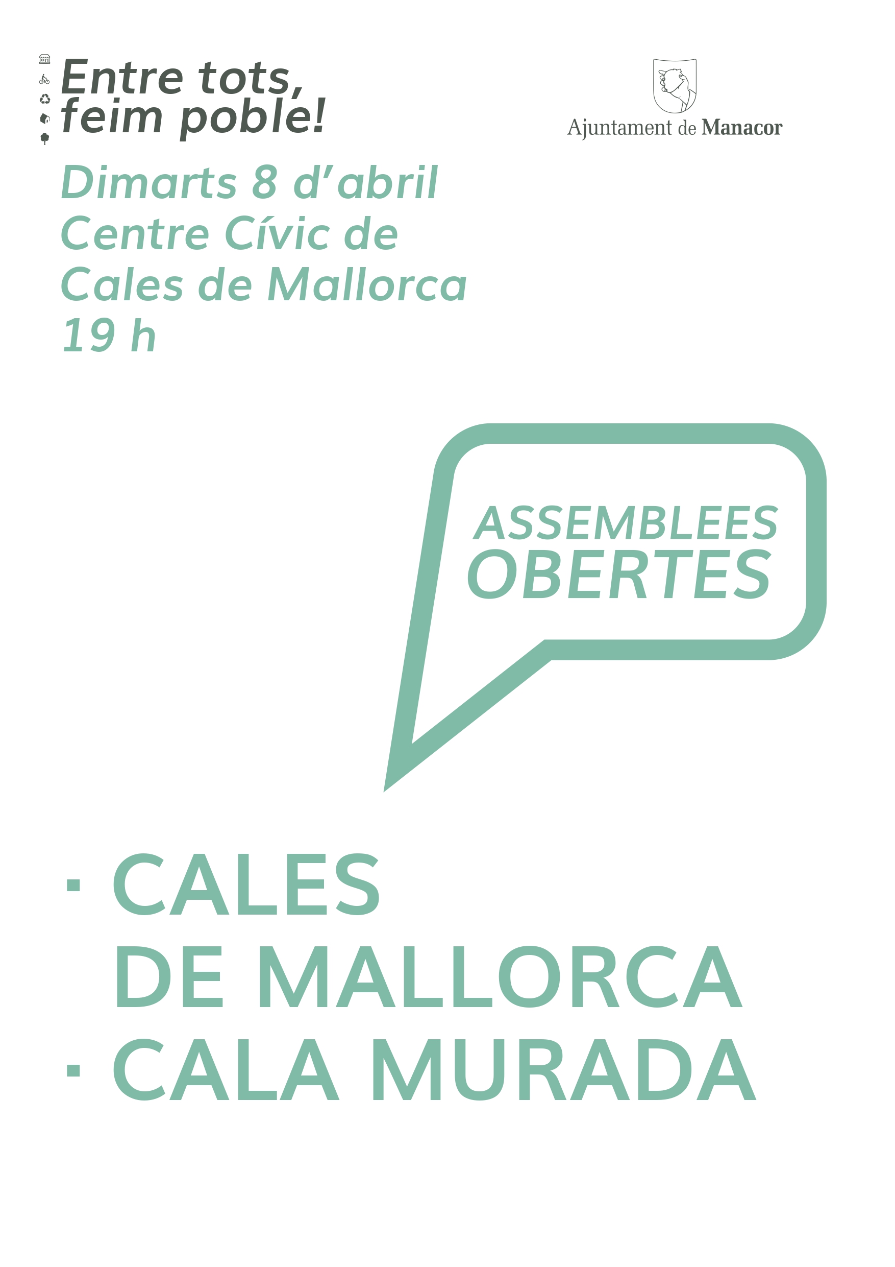 L'Ajuntament de Manacor convoca la ciutadania a participar de les Assemblees Obertes, que recorreran els barris i pobles del municipi