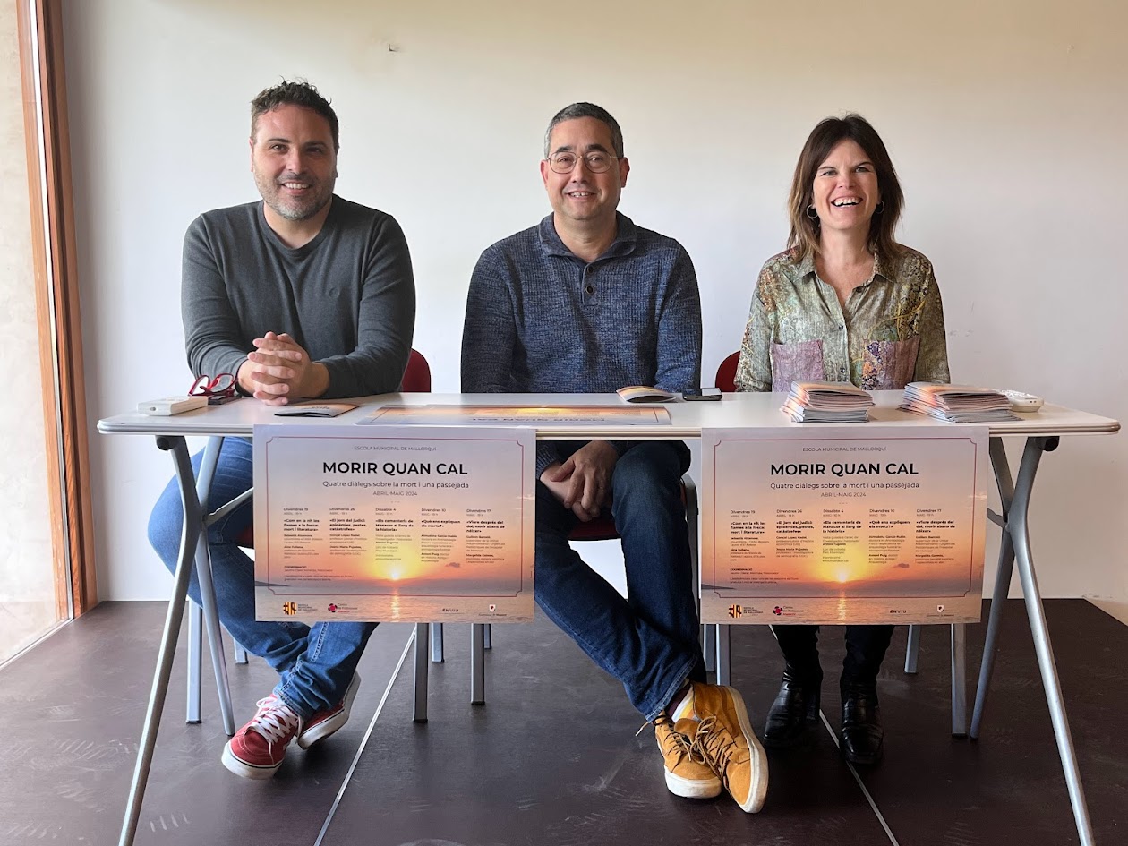 L’Escola Municipal de Mallorquí organitza un nou cicle monogràfic pels propers mesos d’abril i maig. Sota el títol Morir quan cal, es plantegen quatre diàlegs sobre la mort i una passejada pels cementeris de Manacor. El delegat de Política Lingüística, Sebastià Llodrà; la directora de l’Escola Municipal de Mallorquí, Margalida Rosselló; i l’historiador i coordinador del monogràfic, Jaume Claret Miranda; han presentat aquest dijous el contingut d’aquesta nova proposta que pretén oferir una aproximació multidisciplinària i desacomplexada a la mort. Amb un títol homenatge a la novel·la homònima (1974) del manacorí Miquel Àngel Riera i a partir d’una multiplicitat de mirades i interpretacions, Morir quan cal planteja quatre diàlegs i una visita guiada de la mà d’escriptors com Sebastià Alzamora i Aina Fullana; professors com Gonçal López Nadal i Joana Maria Pujadas Mora; l’historiador Antoni Tugores; els especialistes en Arqueologia Almudena García-Rubio i Antoni Puig; o els sanitaris Guillem Barceló i Margalida Galmés.