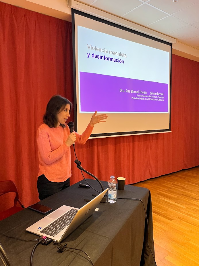 La jornada ha comptat amb la participació de la periodista Ana Bernal Triviño, que ha impartit la conferència ‘Desinformació i bulos sobre violència masclista’. Bernal Triviño és doctora i llicenciada en Periodisme , és professora i investigadora a la Universitat Oberta de Catalunya (UOC), periodista i columnista a Público, El Periódico i col·laboradora a La hora de la 1 a TVE. Reconeguda com una de les periodistes que més ha contribuït a la revolució feminista, el 2017 va exposar un informe sobre el tractament mediàtic del cas Juana Rivas al Congrés dels Diputats El seu treball a favor dels drets humans i en defensa dels drets de la dona li han merescut multitud de premis i reconeixements. Ha publicat Cómo informar e informarse sobre violencia machista i No manipuléis el feminismo, una defensa contra los bulos machistas. AixÍ com Las mujeres de Federico i recentment, Los hombres de Federico. Bernal ha reflexionat sobre la narrativa i la representació que construeixen els mitjans de comunicació al voltant de les dones, del feminisme i de les violències masclistes. Quin concepte creen els mitjans de les dones - com la bona dona o la mala dona -, com es crea el relat masclista, l'auge de la desinformació i de les notícies falses, han centrat bona part de la ponència.