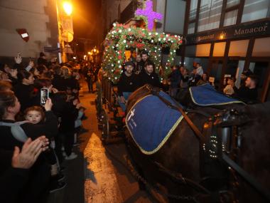 El carro de la Colcada ha sortit des de davant la Sala acompanyat per la colla de dimonis i sonadors, a més de les autoritats polítiques, els membres del Patronat de Sant Antoni, la Banda de Música i el poble, que fa la festa.