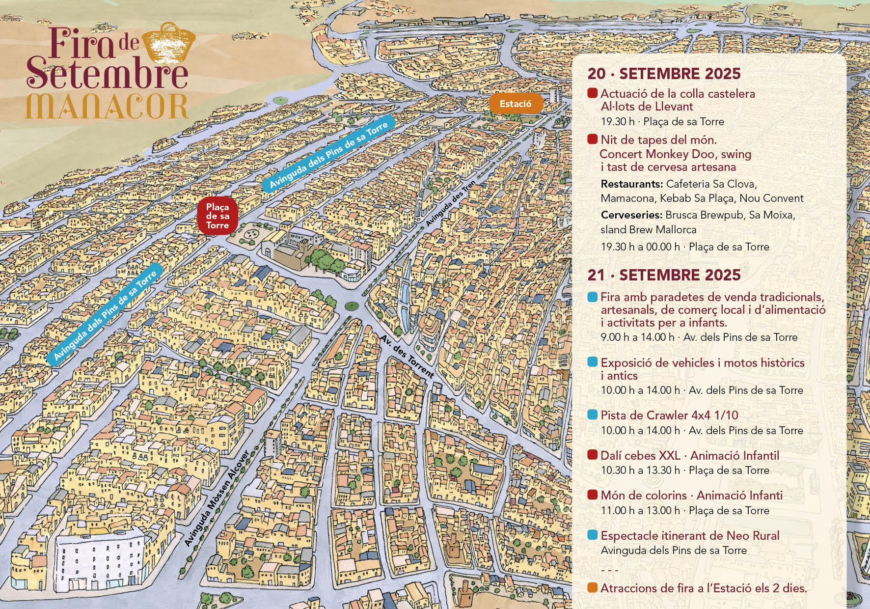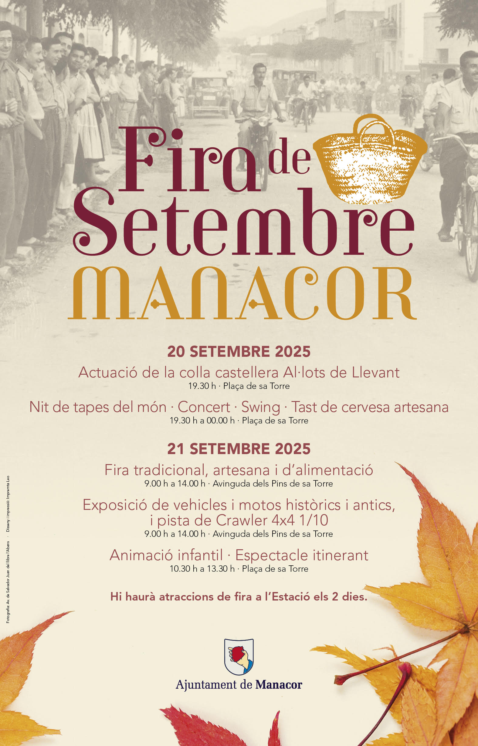 Manacor viurà el cap de setmana del 20 i 21 de setembre una nova edició de la Fira de Setembre, que enguany presenta una novetat destacada: l’estrena de l’avinguda dels Pins de sa Torre com a nou escenari principal. Un espai ampli i obert que convida a passejar i a gaudir de la fira d’una manera més còmoda i accessible.