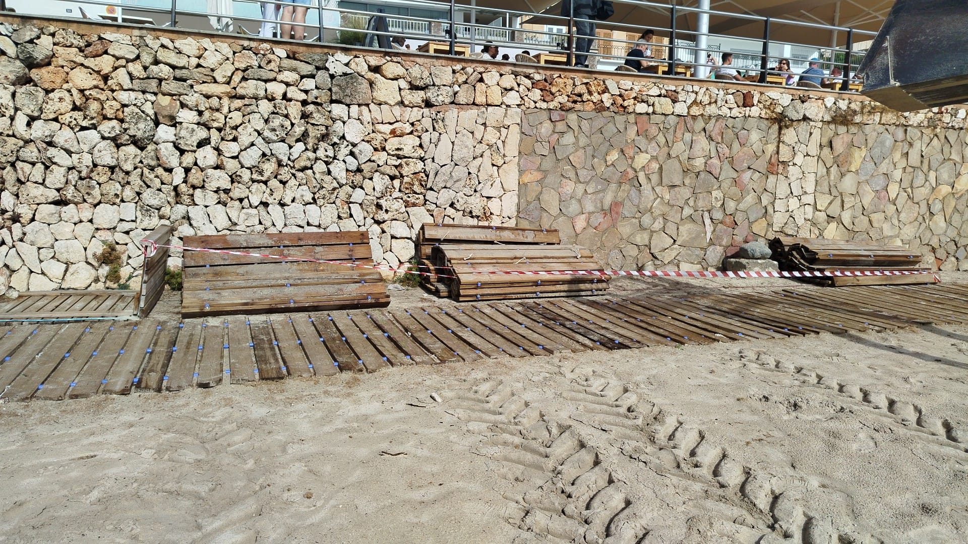 - Cala Antena: s’està valorant desmuntar els para-sols a causa dels danys ocasionats pel temporal. També s’ha detectat una roca desplaçada damunt el passeig marítim.