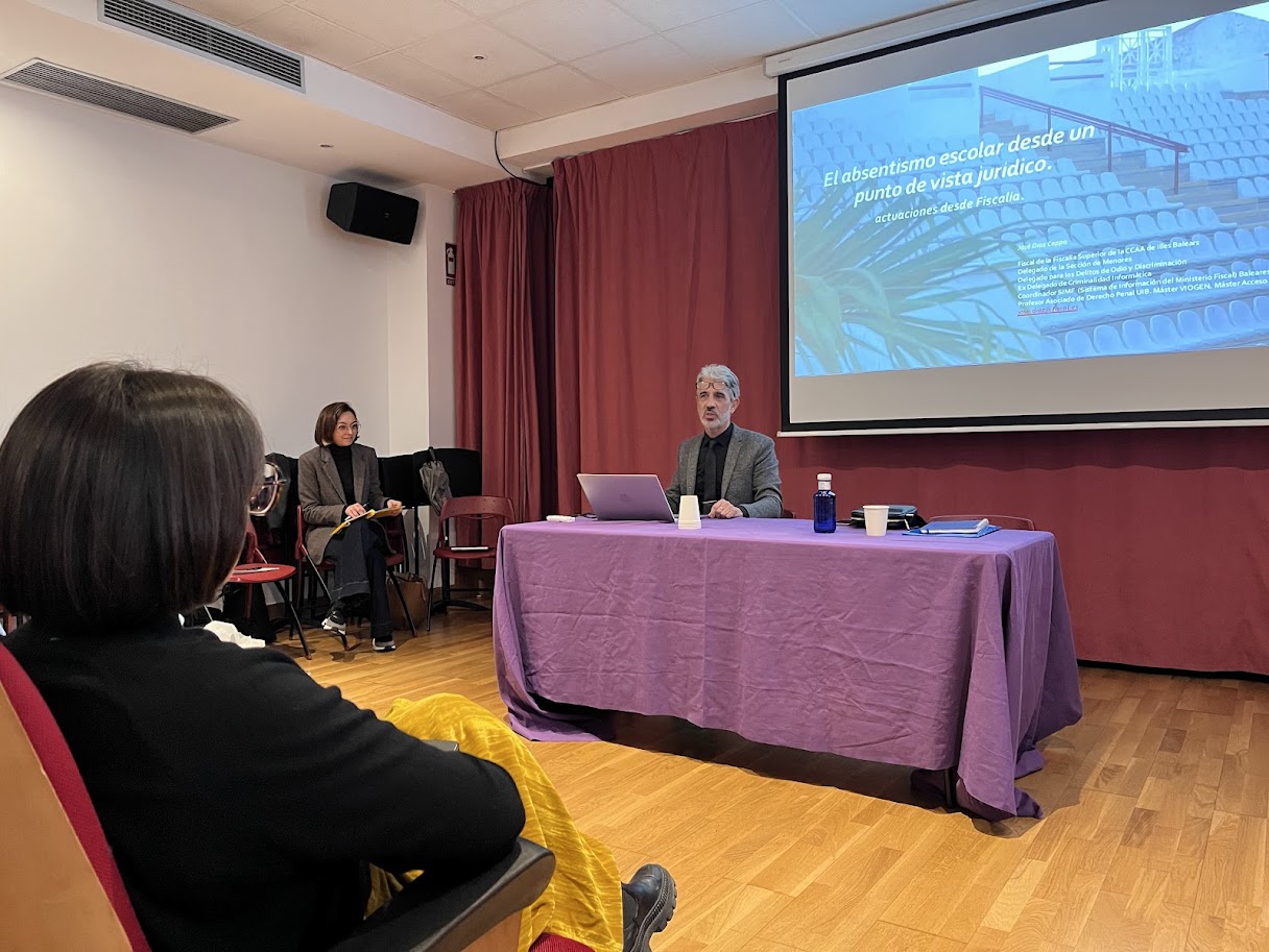 La jornada ha combinat ponències tècniques amb una dinàmica participativa. Des de la vessant educativa, Maria Àngels Santamaría, del Servei d’Inclusió per a la Comunitat Educativa, ha aportat una mirada centrada en la diversitat i la inclusió. Des de l’àmbit jurídic, el fiscal de la Fiscalia Superior de les Illes Balears, José Díaz Cappa, ha explicat el procediment legal davant els casos d’absentisme escolar i el paper de la fiscalia. La dimensió social ha estat abordada per Neus Cano, cap de Secció d’Urgències de l’IMAS, que ha posat l’accent en la detecció precoç i la intervenció amb les famílies.