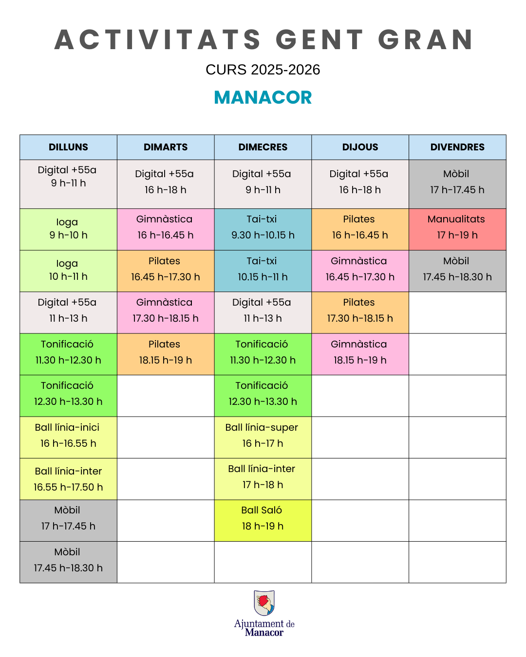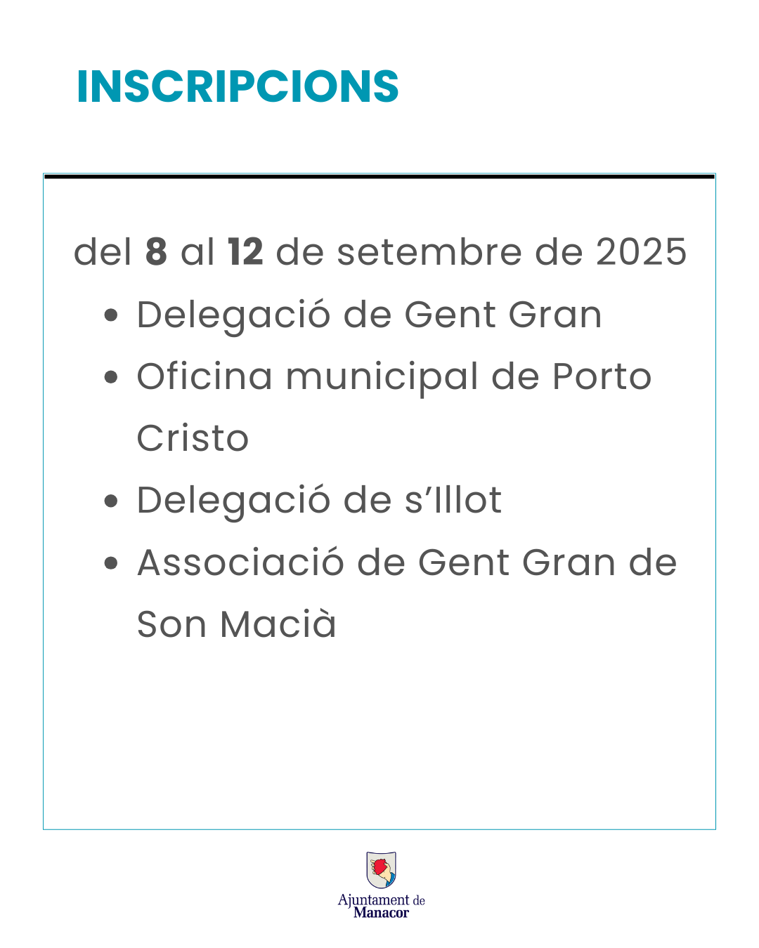 Amb aquesta programació, l’Ajuntament de Manacor reafirma el seu compromís amb la promoció de la salut, la cohesió social i l’oferta d’oci saludable per a la gent gran, fomentant espais de trobada i convivència.
