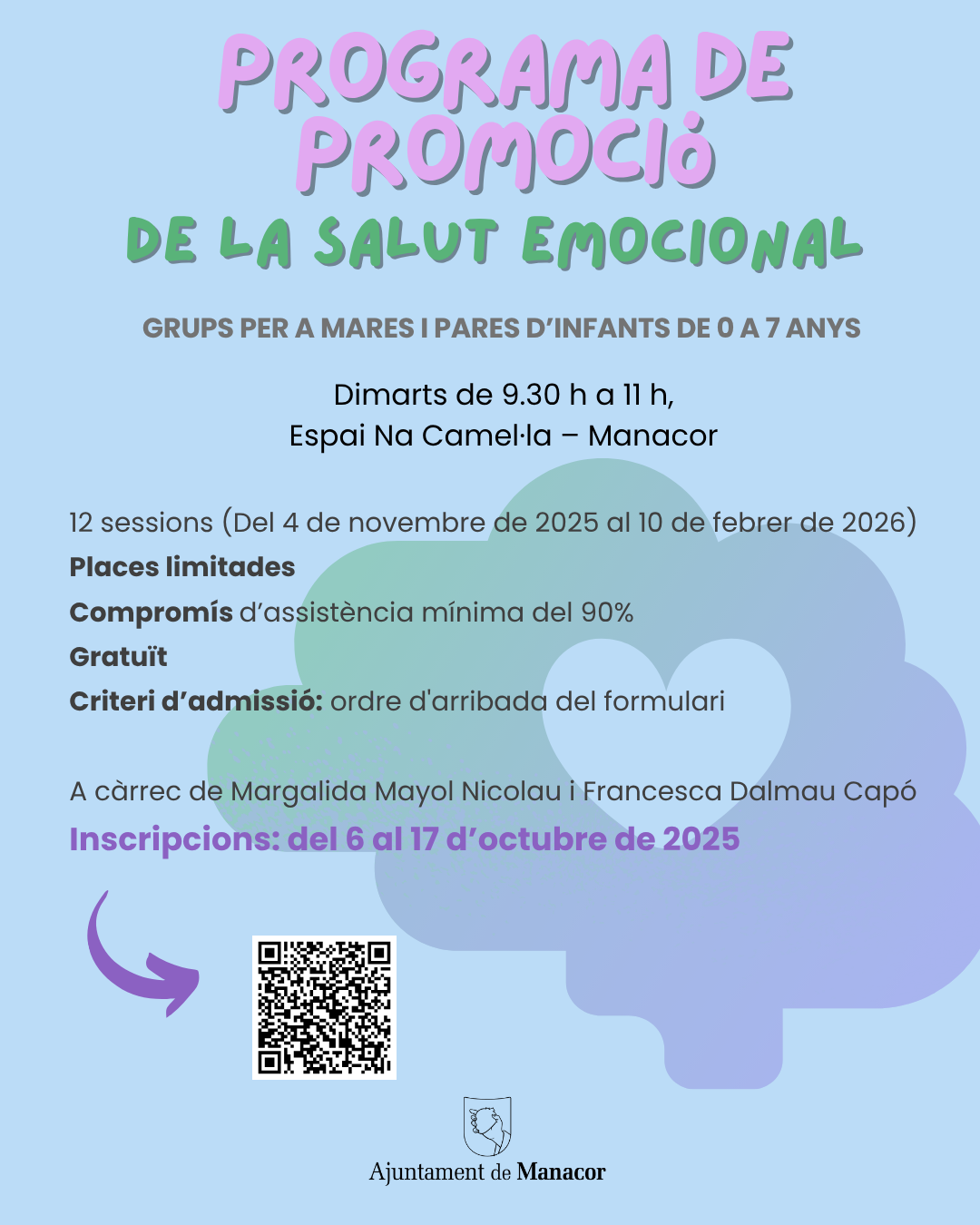 Amb aquesta iniciativa, l’Ajuntament de Manacor reforça el seu compromís amb el benestar de les famílies i el desenvolupament saludable dels infants, oferint un espai de suport i aprenentatge on pares i mares puguin trobar recursos i eines que els ajudin a superar els reptes que suposa la criança