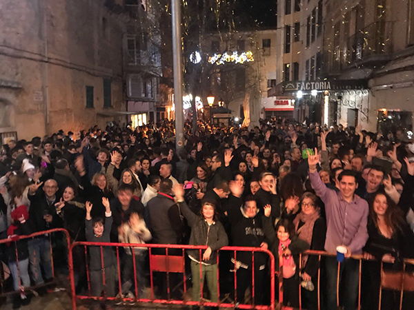 Famílies senceres, amics i veïnats amb ganes de música i de passar-ho bé es trobaren a la plaça Weyler per donar la benvinguda al 2017 plegats. A les 23.40 h de la nit, les presentadores de la gala de Cap d’Any de Manacor, na Montse Amer i na Margalida Alajarin, començaren a animar tots els que arribaven a la plaça Weyler amb els dotze raïms a punt. Connexions en directe, bromes, vídeos i fotos varen fer passar el temps fins que començaren a sonar les dotze campanades que ens feren entrar al 2018. Paperins, cava, “molts d’anys” i els millors desitjos per a l’any nou ompliren de festa la plaça Weyler.